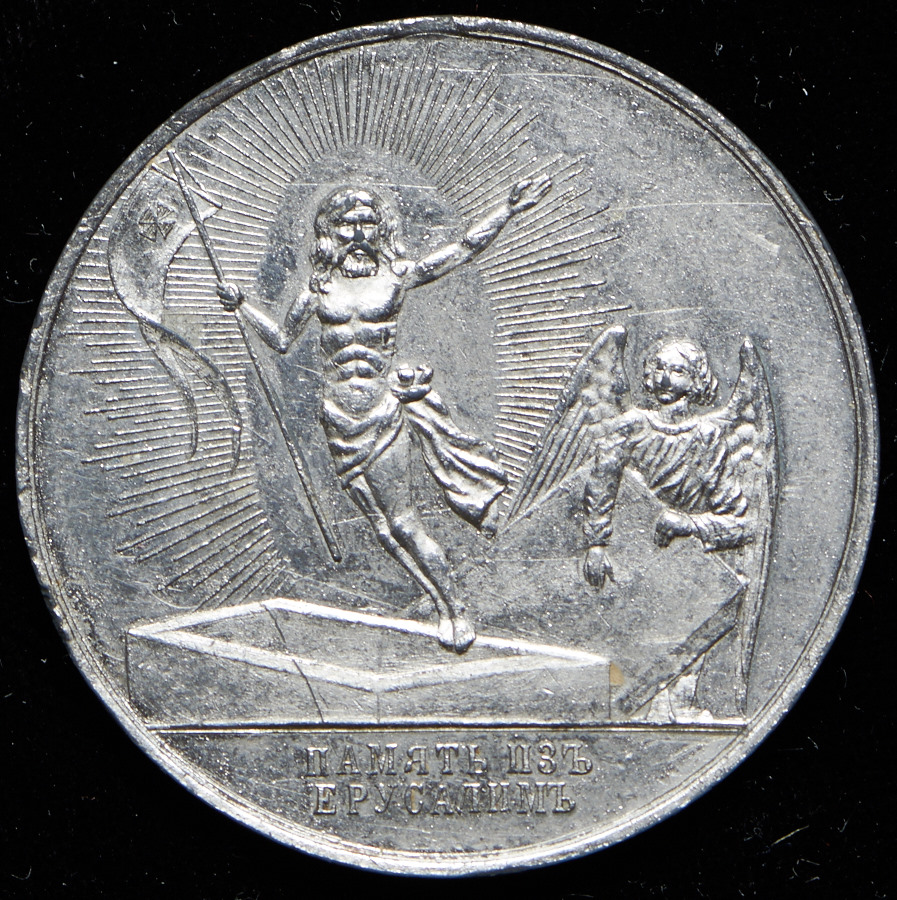 Медаль "Память из Ерусалима. Сохрани бог жизнь царя и царицы" 1896