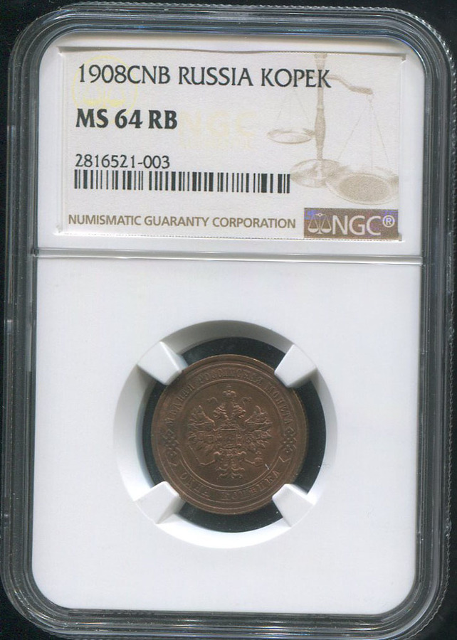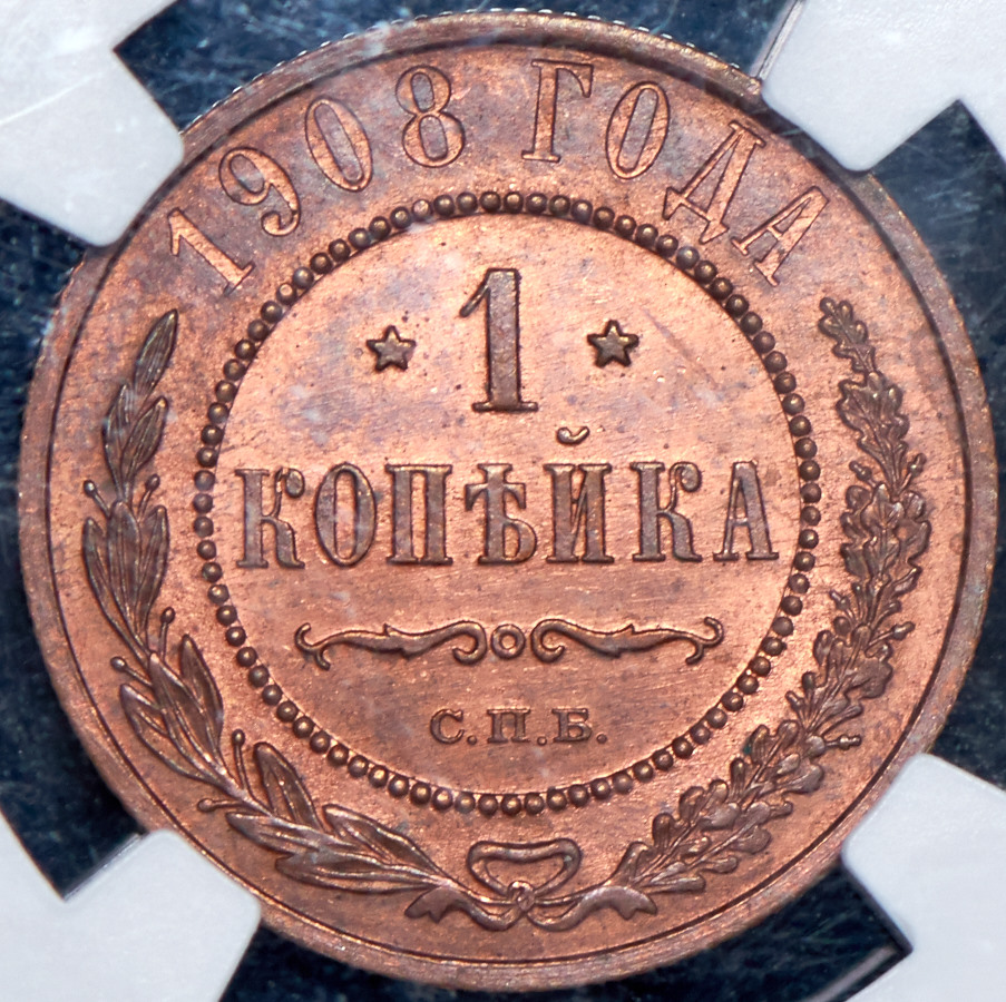 Копейка 1908 (в слабе) СПБ