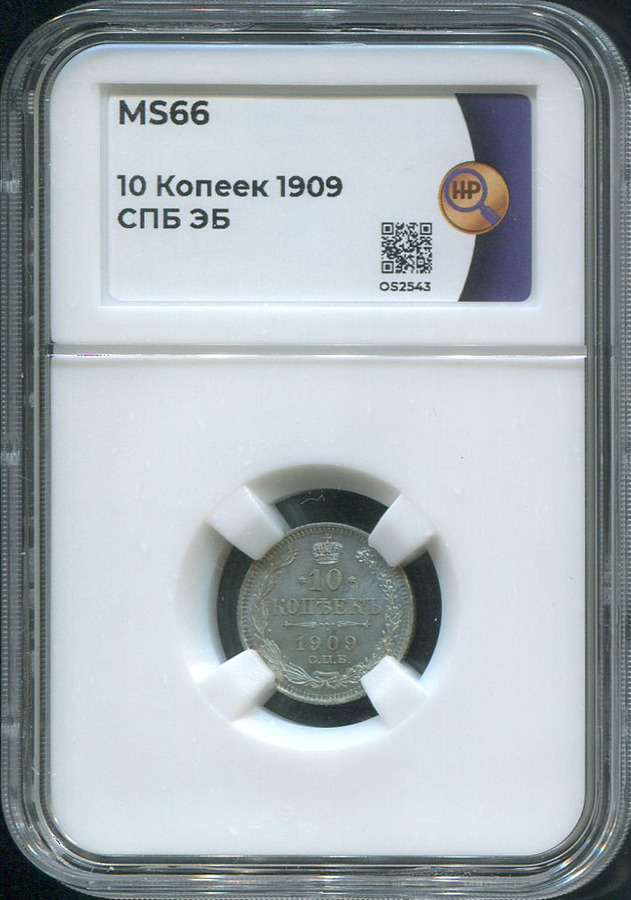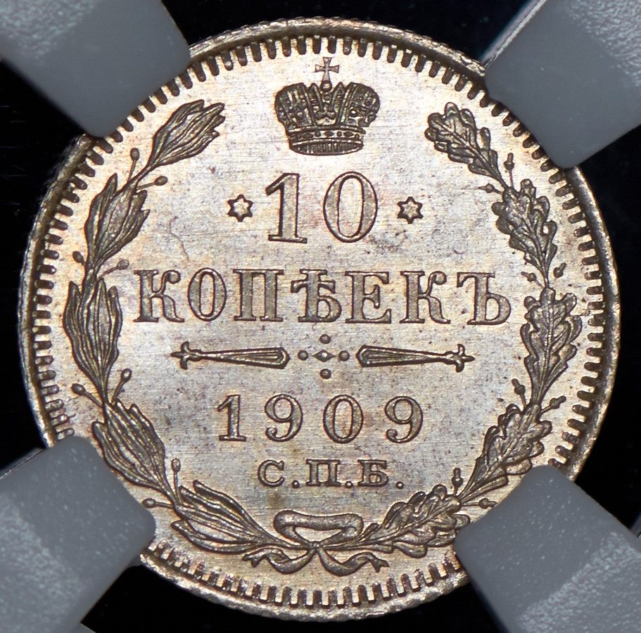 10 копеек 1909 (в слабе) СПБ-ЭБ