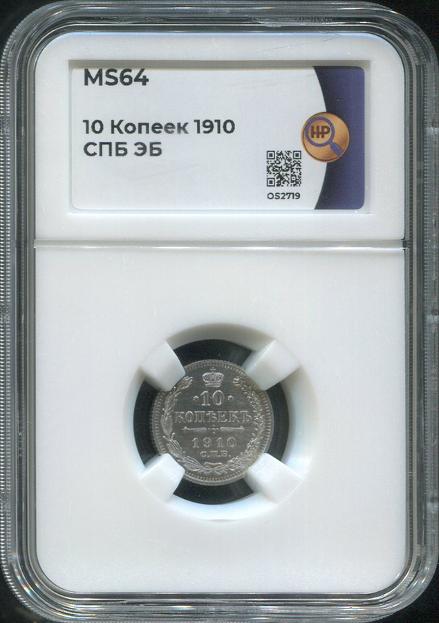 10 копеек 1910 (в слабе) СПБ-ЭБ