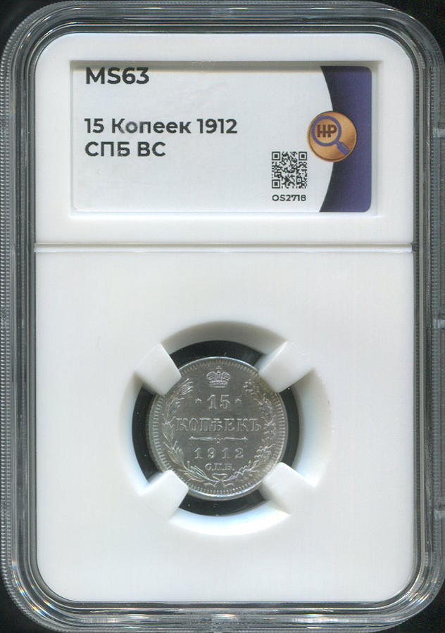 15 копеек 1912 (в слабе) СПБ-ЭБ
