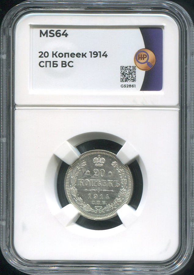 20 копеек 1914 (в слабе) СПБ-ВС