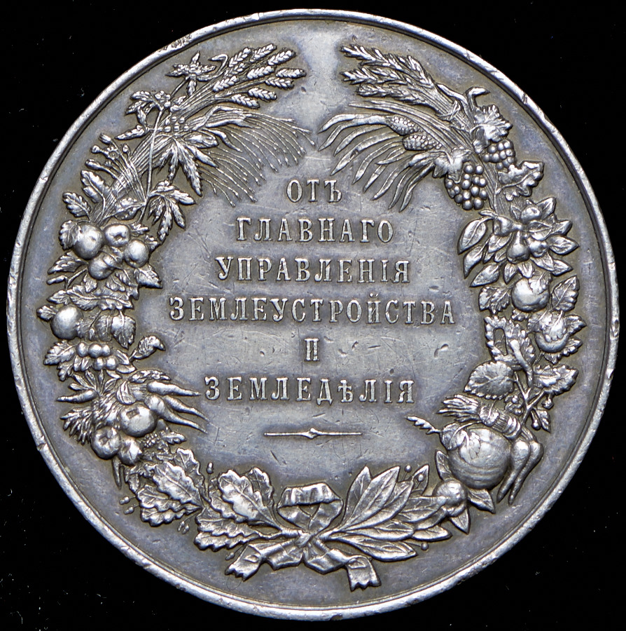 Медаль для губернских выставок сельских произведений. От Главного управления землеустройства и земледелия.