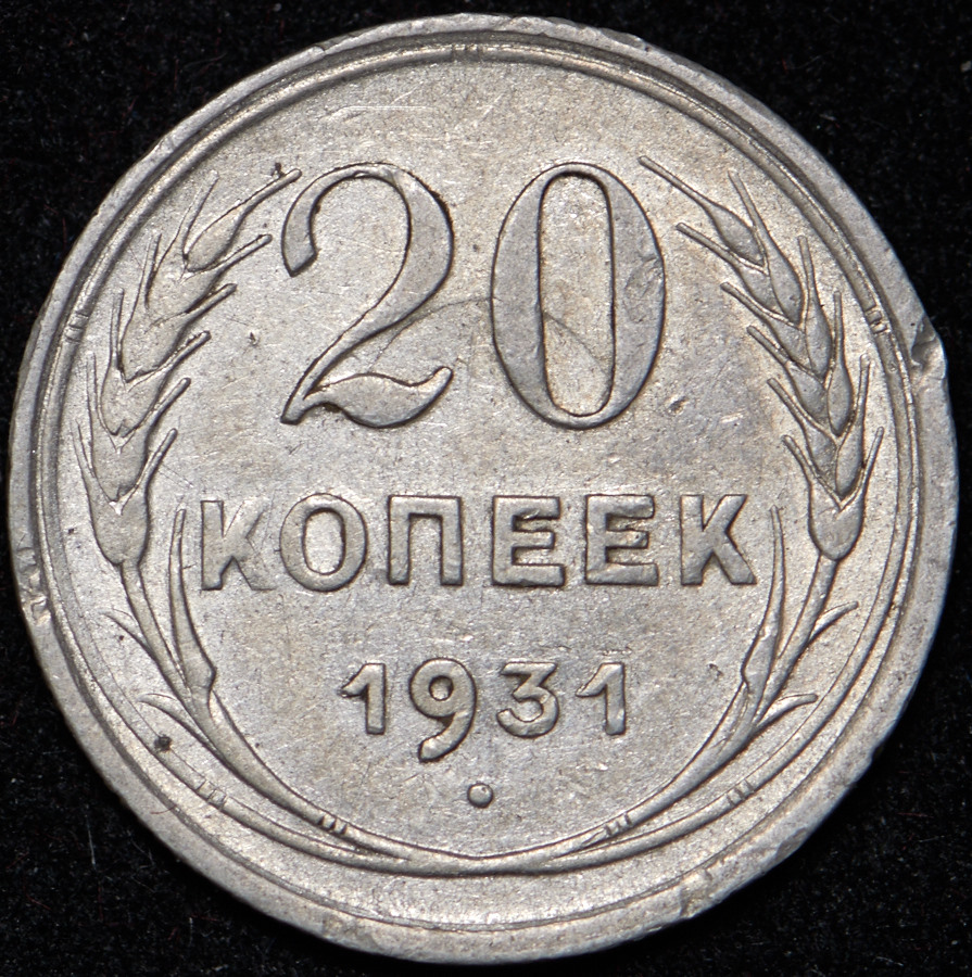 В конце 1931 года чеканившиеся серебрянные разменные монеты (номиналом 10, 15 и 20 копеек) были заменены на монеты нового оформления, которые стали производится из медно-никелевого сплава. Уже отчеканенные к этому моменту монеты были переплавлены. Сохранившиеся же до нашего времени 20-копеечники очень редки.