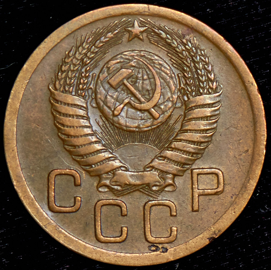 На аверсе вторая и третья буквы "С" приподняты, буква "Р" примыкает вплотную, диск солнца с тонким венчиком. На реверсе цифры даты сближены.