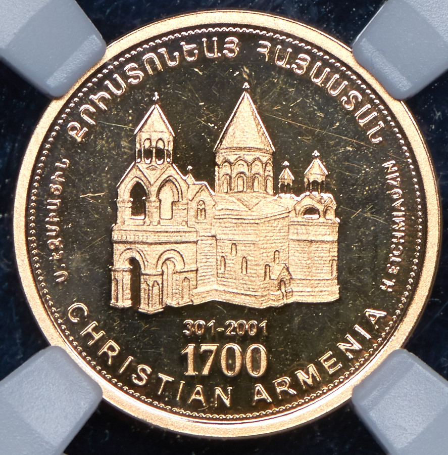 Эта золота монета выпущена в серии "1700 лет принятия христианства в Армении".
