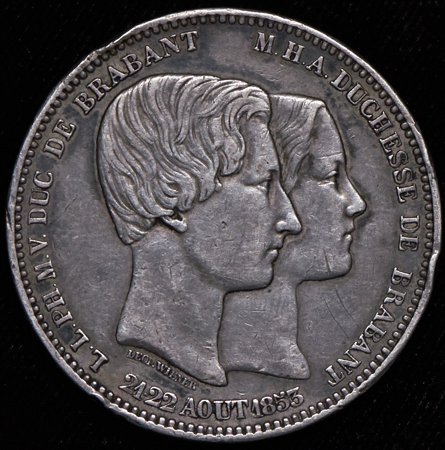 5 франков 1853 "Свадьба принца Леопольда и эрцгерцогини Марии Генриетты" (Бельгия)