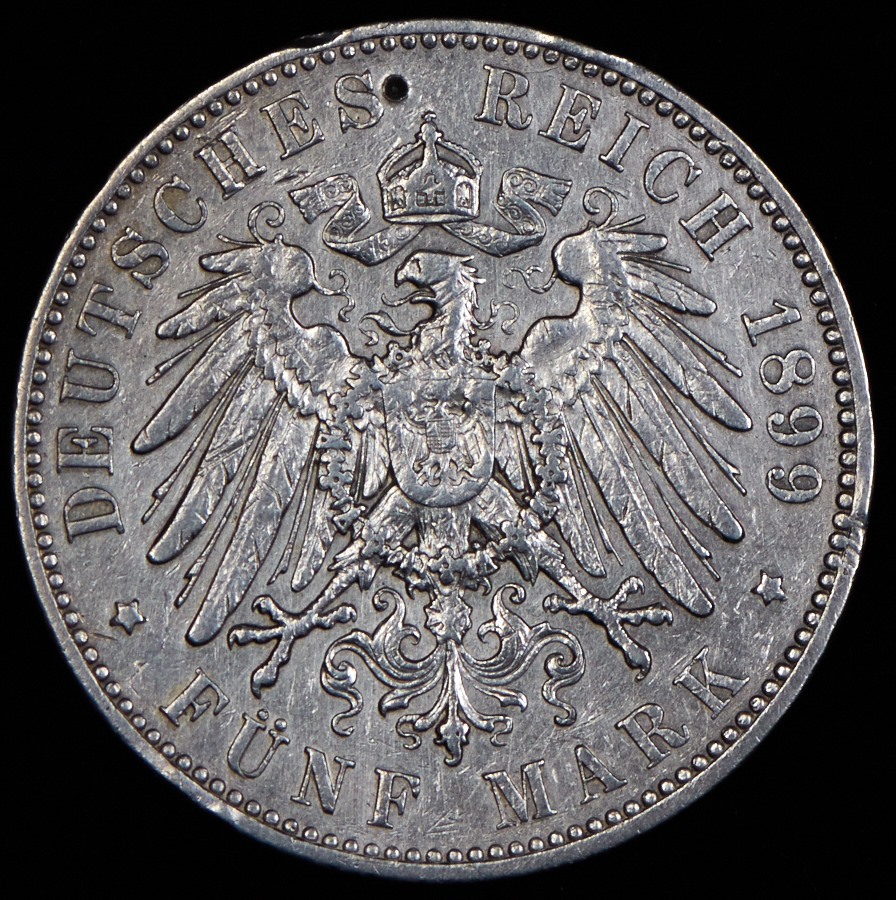 KM# 1246.¶Альберт Саксонский - король Саксонии c 29 октября 1873 года по 19 июня 1902 г. Саксонский и германский генерал-фельдмаршал, русский генерал-фельдмаршал (1871 год). Кавалер ордена Святого Апостола Андрея Первозванного (20 июля 1851 года). Легкие следы бытования.
