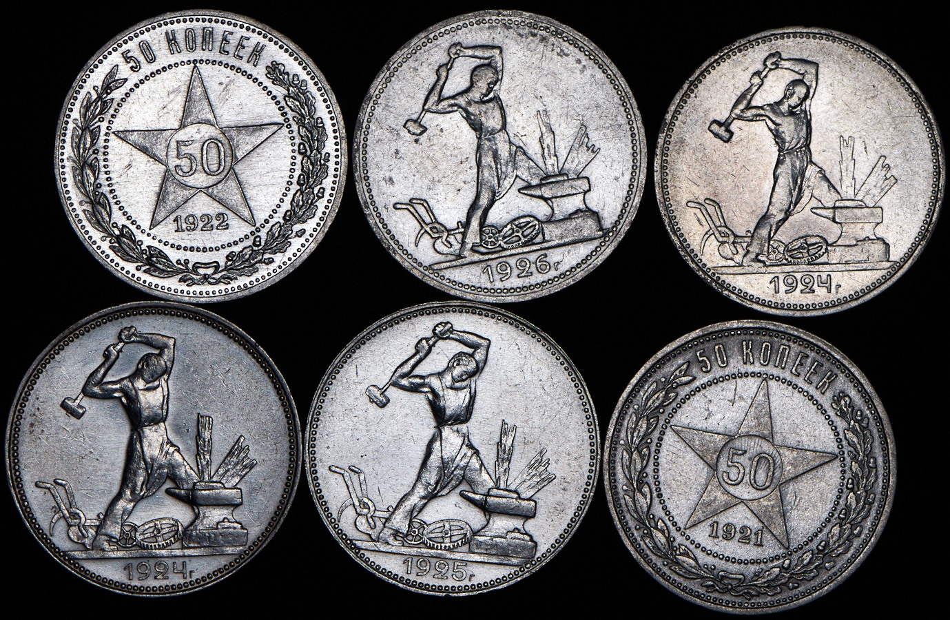 Набор из 6-ти сер. монет 50 копеек - Полтинник 1921-1926