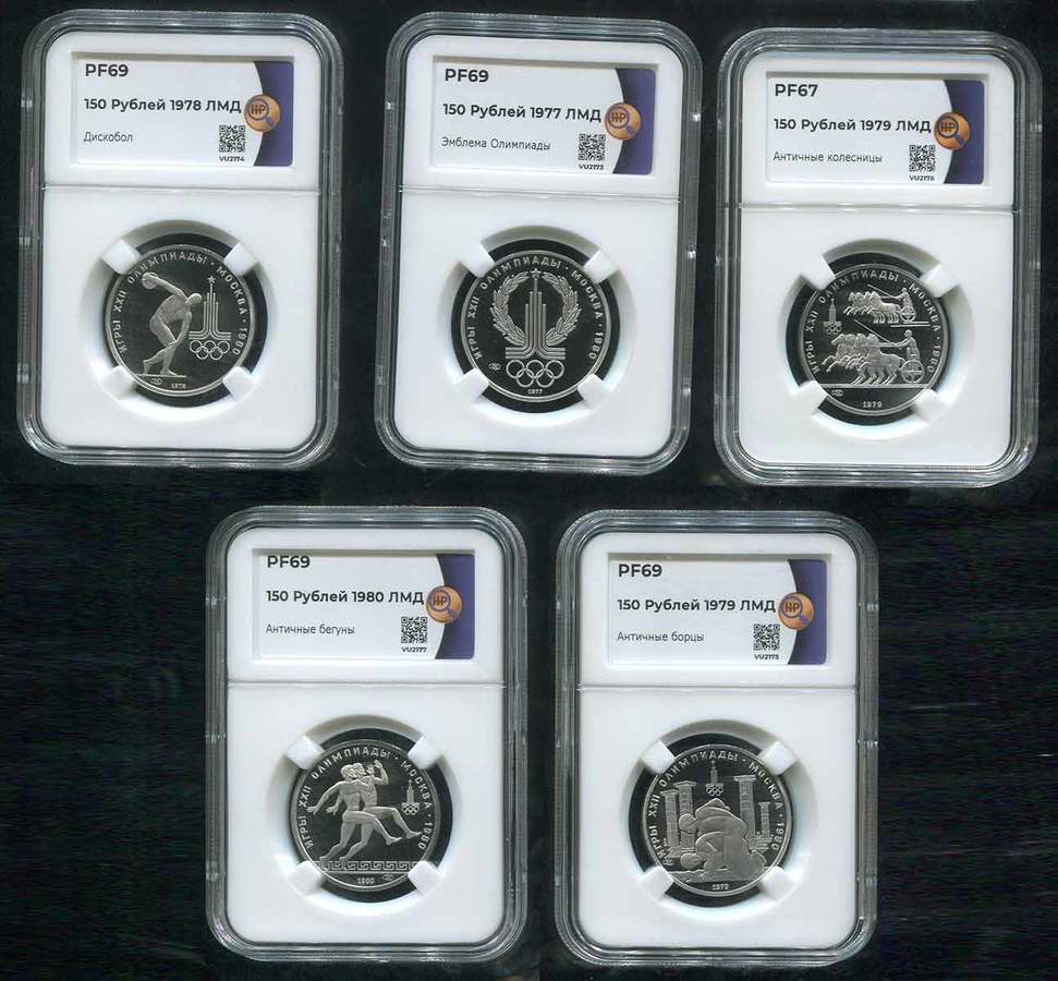 Комплект из 5-ти монет 150 рублей "Олимпиада-80" (в слабах) ЛМД