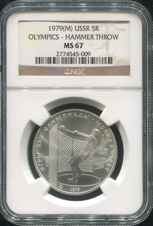 5 рублей 1979 "Олимпиада 1980: Метание молота" (в слабе) ММД