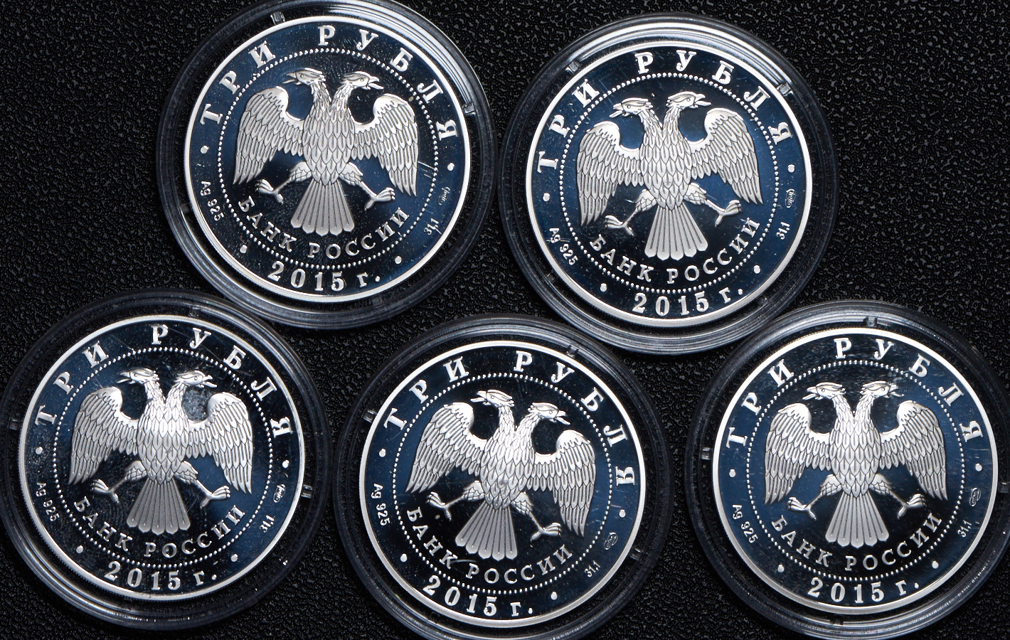 Набор из 10-ти сер. монет 3 рубля 2015 "Символы России"