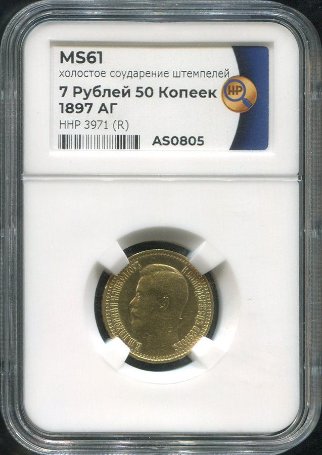 7,5 рублей 1897 (в слабе) (АГ)