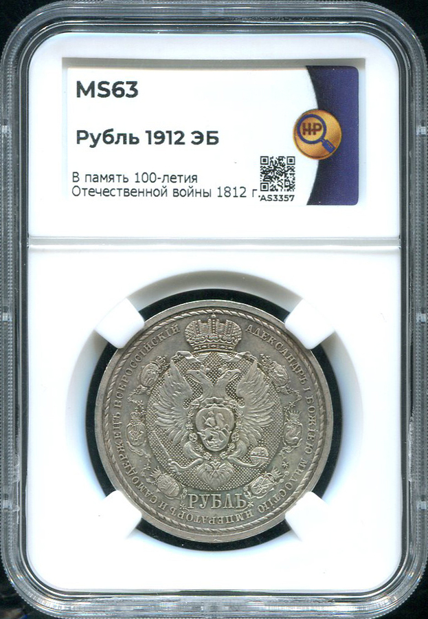 Рубль 1912 "Сей Славный Год" (в слабе) (ЭБ)