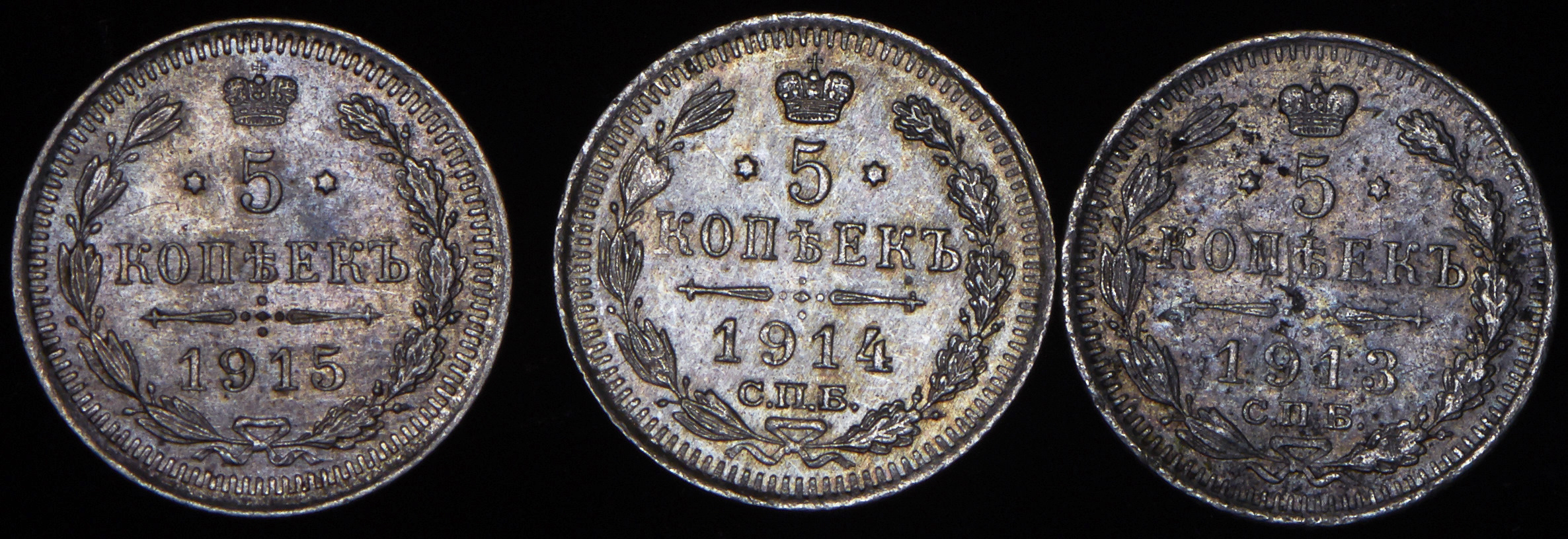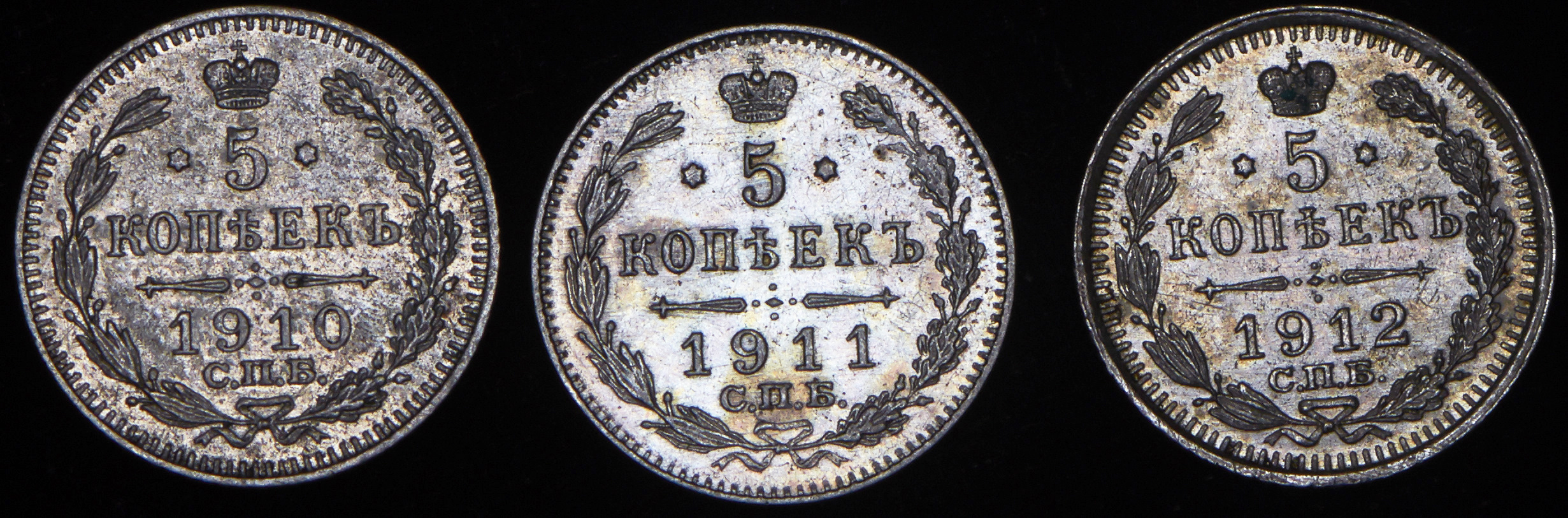 5 копеек 1910,1911,1912,1913,1914,1915. XF-AU