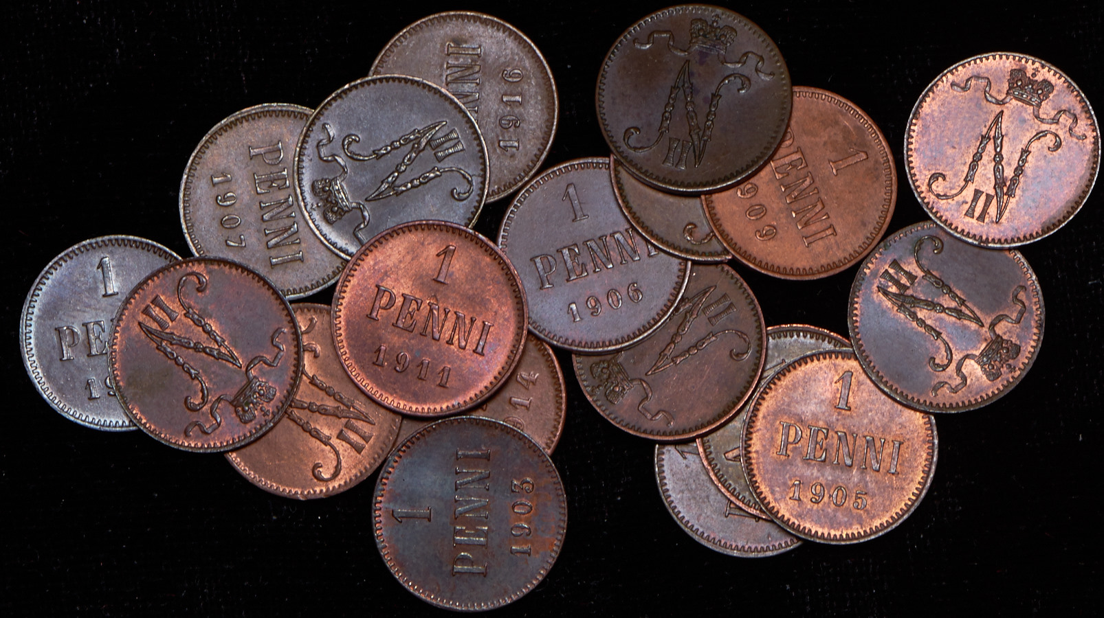 Набор из 19-ти монет 1 пенни (Николай II) (Финляндия)