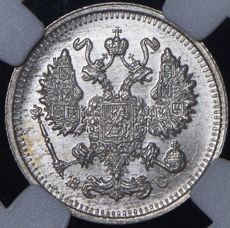 "После начала первой мировой войны, в которой противником России была германия, русской столице в 1915 г. вместо "немецкого" названия - Санкт-Петербург - было присвоено русское - Петроград. В связи с этим со всех русских монет (разменных серебряных и медных) было снято обозначение Петербургского монетного двора - "СПБ" (т.е. "Санкт-Петербург"), однако другого обозначения до 1917 г. так и не было установлено."