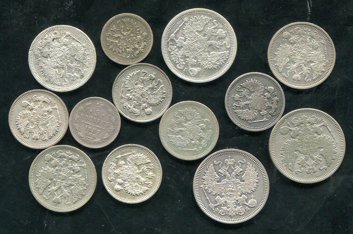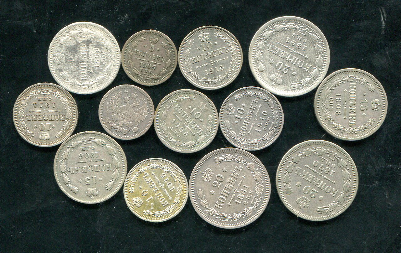 Набор из 13-ти монет 5,10,15,20 копеек (1861-1916)