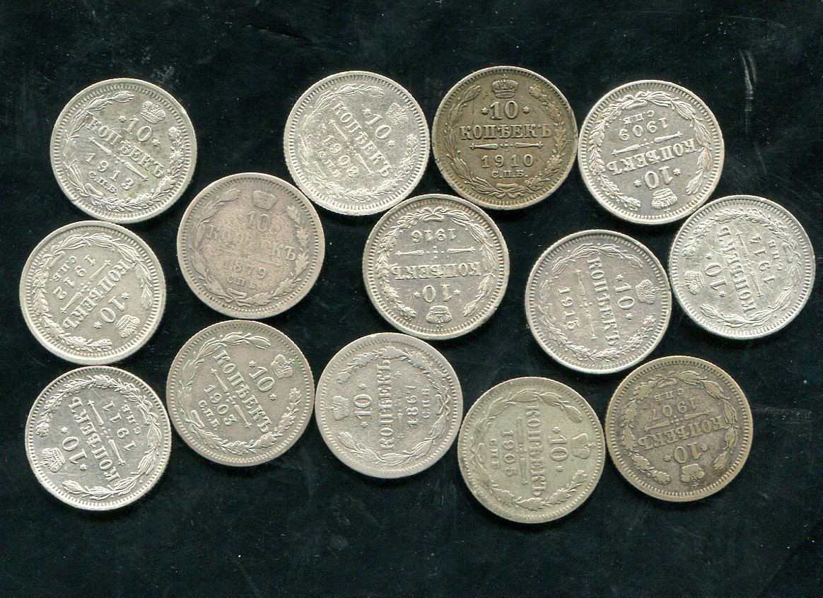 Набор из 14-ти монет 10 копеек (1867-1916)