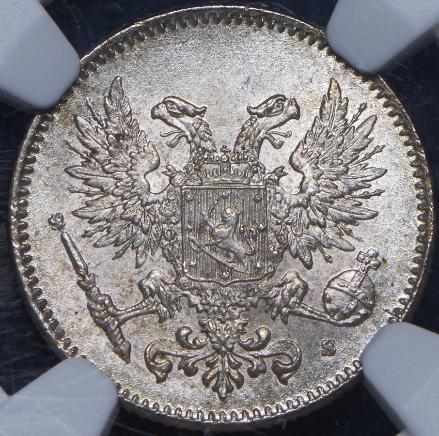 Уздеников 4836.Биткин 1.Гельсингфорсский монетный двор.Гербовый орел без корон. В слабе NGC.