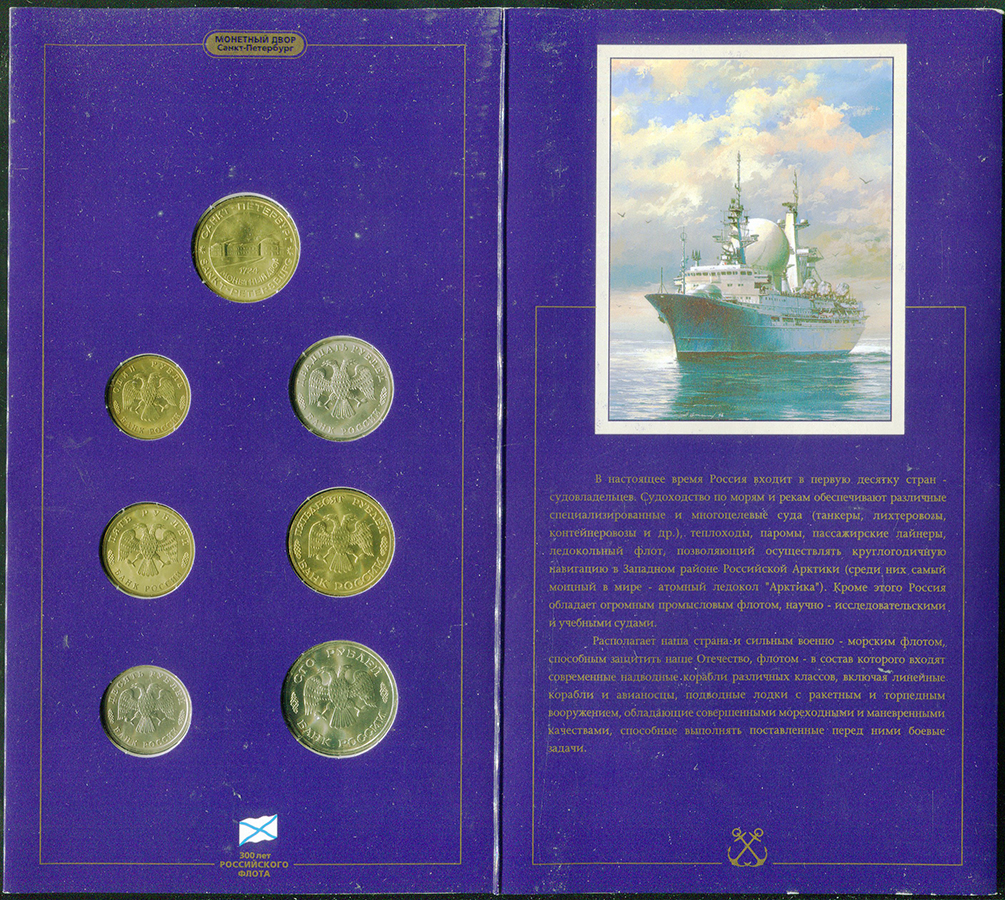 Набор памятных монет 1996 года, отчеканенных на Санкт-Петербургском монетном дворе и посвященных 300-летию Российского флота.