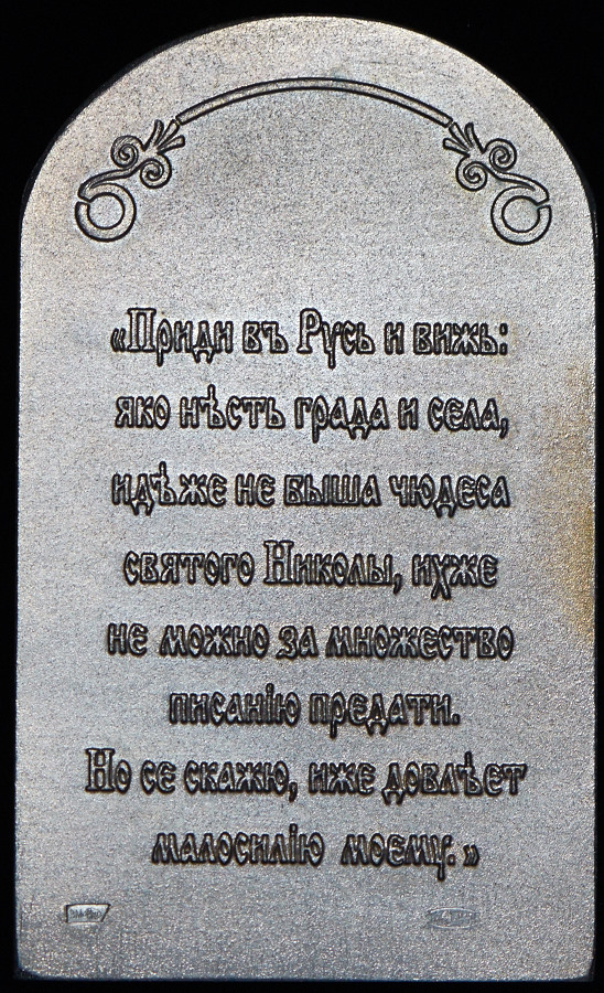 Набор состоит из 6 медалей (серебро 925 пробы, выполнены в технике выборочного золочения и чернения, чистый вес драг. металла медалей - 1 тр. унция (31,1 г), диаметр - 39 мм) и плакетки с изображением Святого Николая Чудотворца (серебро 925 пробы с выборочным золочением и чернением, размер плакетки - 50 х 30 мм, вес 50 г). Набор имеет номерной сертификат.Медали изготовлены на Московском монетном дворе. Полный комплект с красивой родной коробкой. На медалях стоит знак монетного двора, проба металла и клеймо. Отличное состояние. На рынке практически не встречается в продаже. Тираж раскуплен