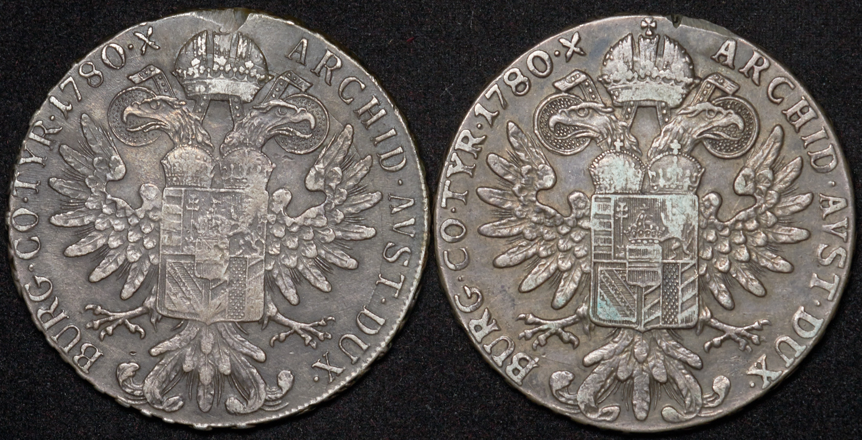 Набор из 2-х сер. монет Талер 1780. Рестрайк (Австрия)
