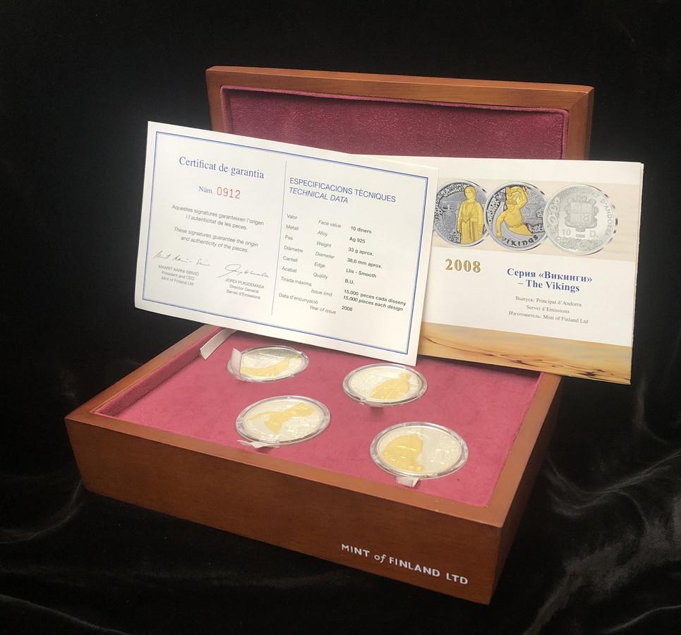 Набор из 4-х монет 10 динар 2008 "Викинги" (Андорра) (в п/у)