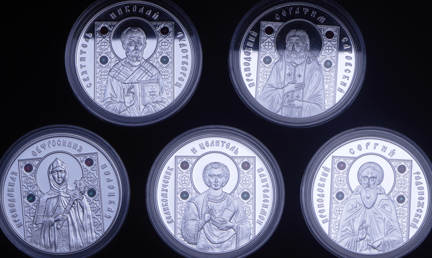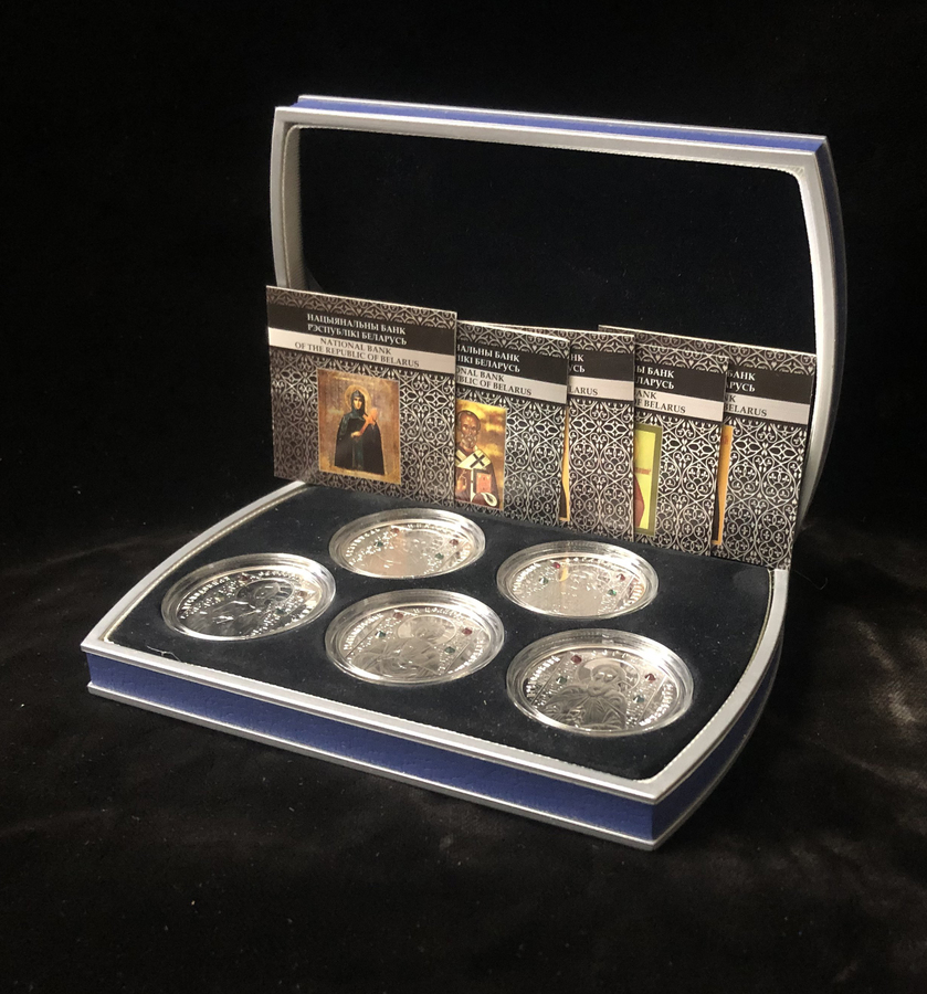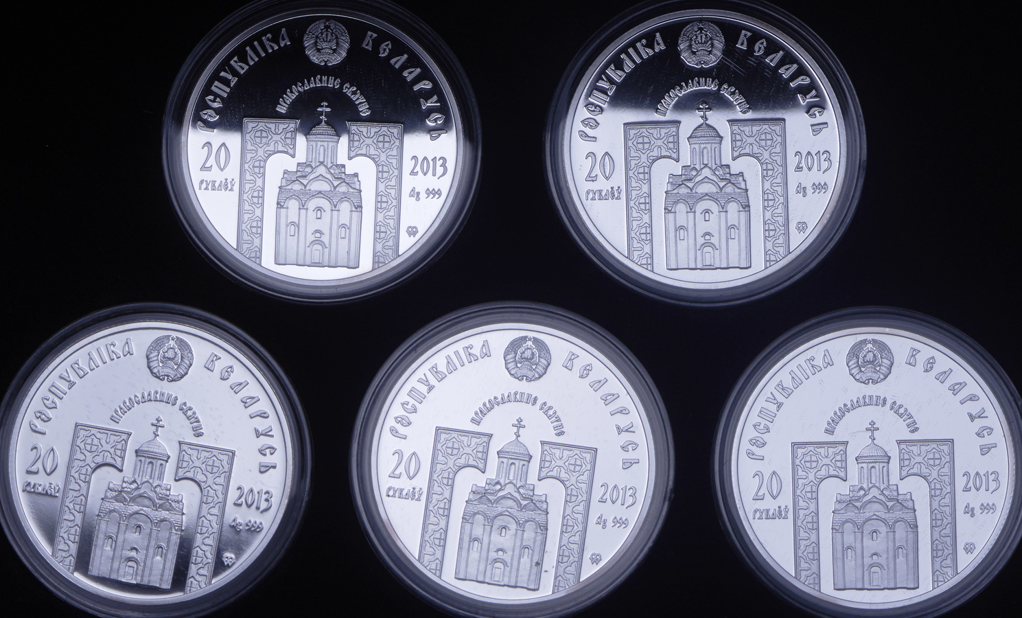 Набор из 5-ти сер. монет 20 рублей 2013 "Православные Святые" (Беларусь) (в п/у)
