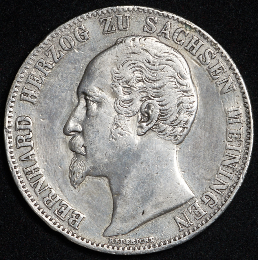 KM# 160.Dav. 836.Двойной талер = 3,5 гульдена.Бернгард II.В каталоге Краузе указан тираж 14000 экз. Множественные следы бытования. Следы реставрации поверхностей. Редка.