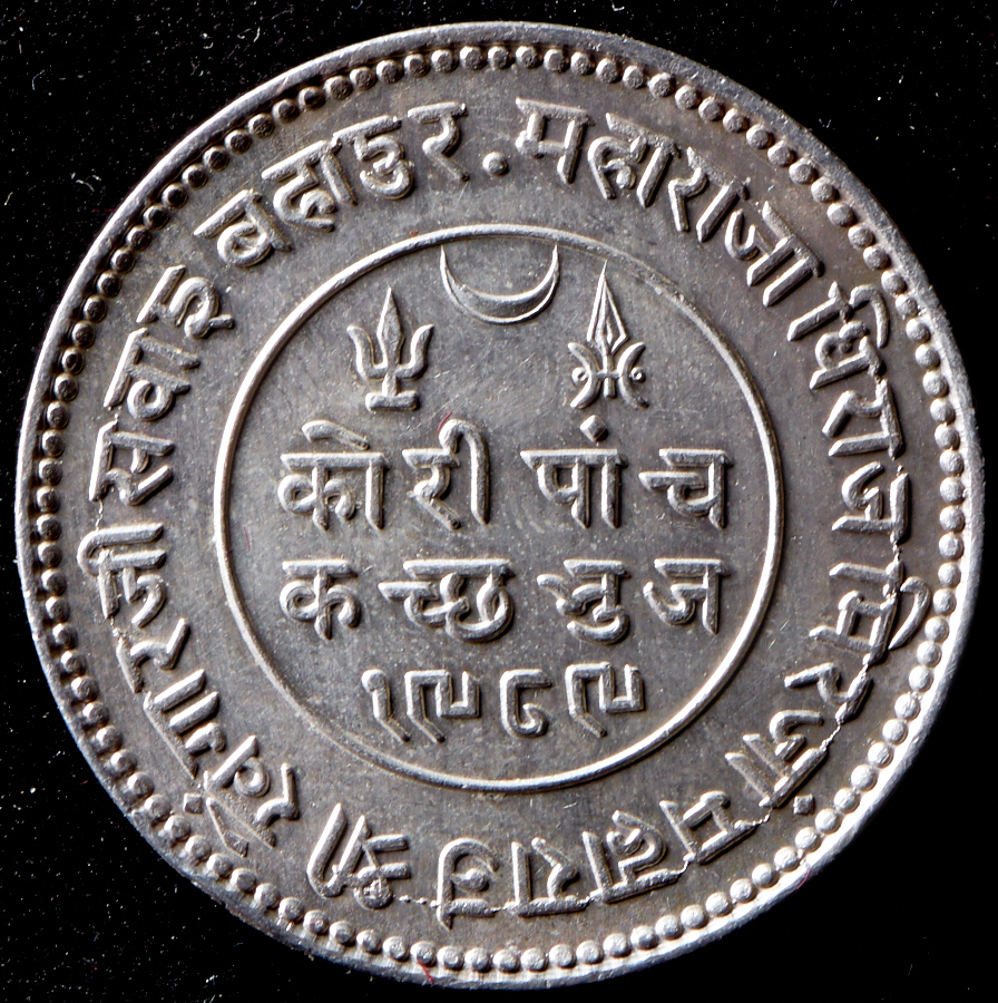 Y# 53a. Георг V / Хенгарджи III. Княжеское государство Кач (1862 - 1948). Следы легкой чистки.