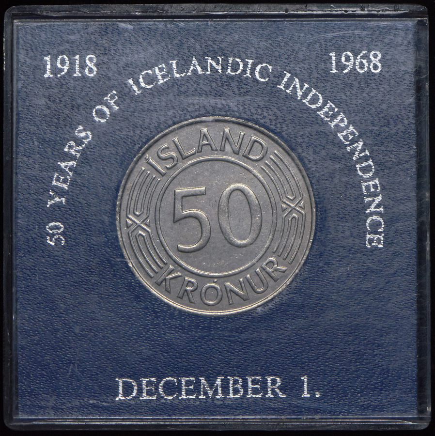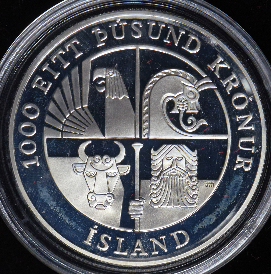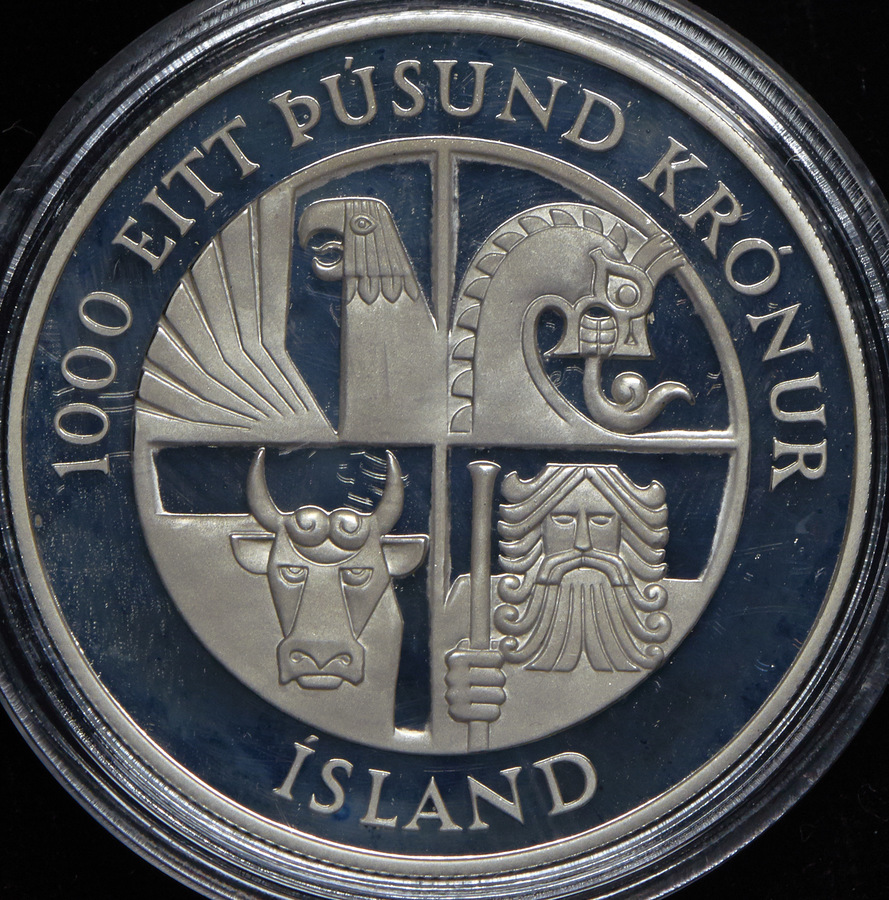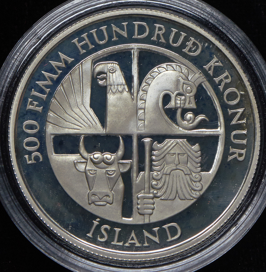 500 крон 1986 - серебро 0.925, 50 крон 1968 - никель, 1000 крон 1974 - серебро 0.925, 1000 крон 2000 - серебро 0.900, 500 крон 1974 - серебро 0.925.