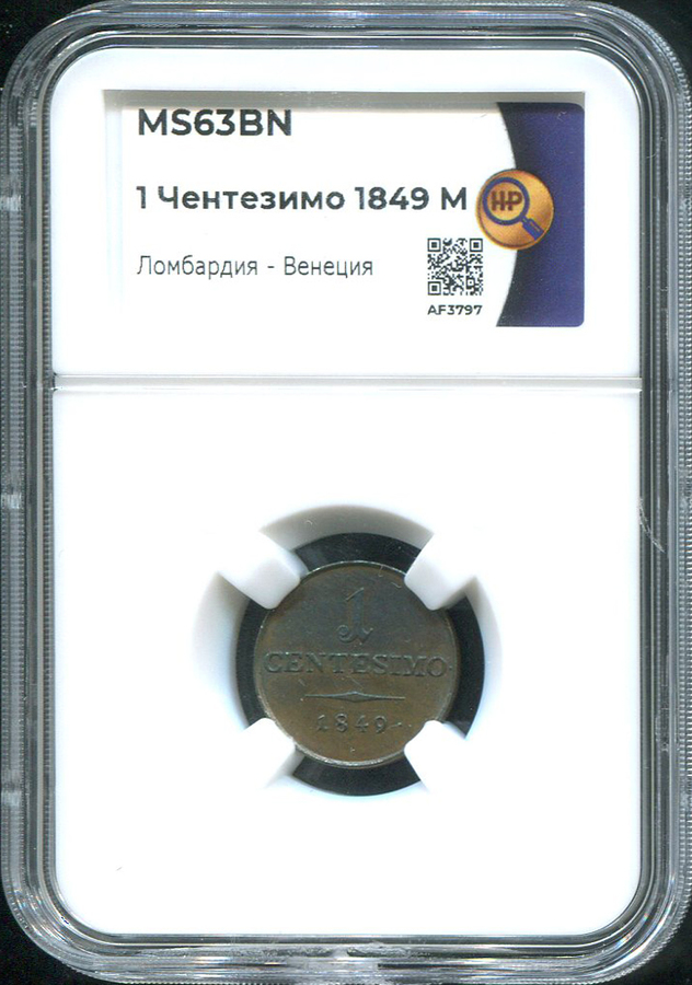 1 чентезимо 1849 (Ломбардия-Венеция) (в слабе)