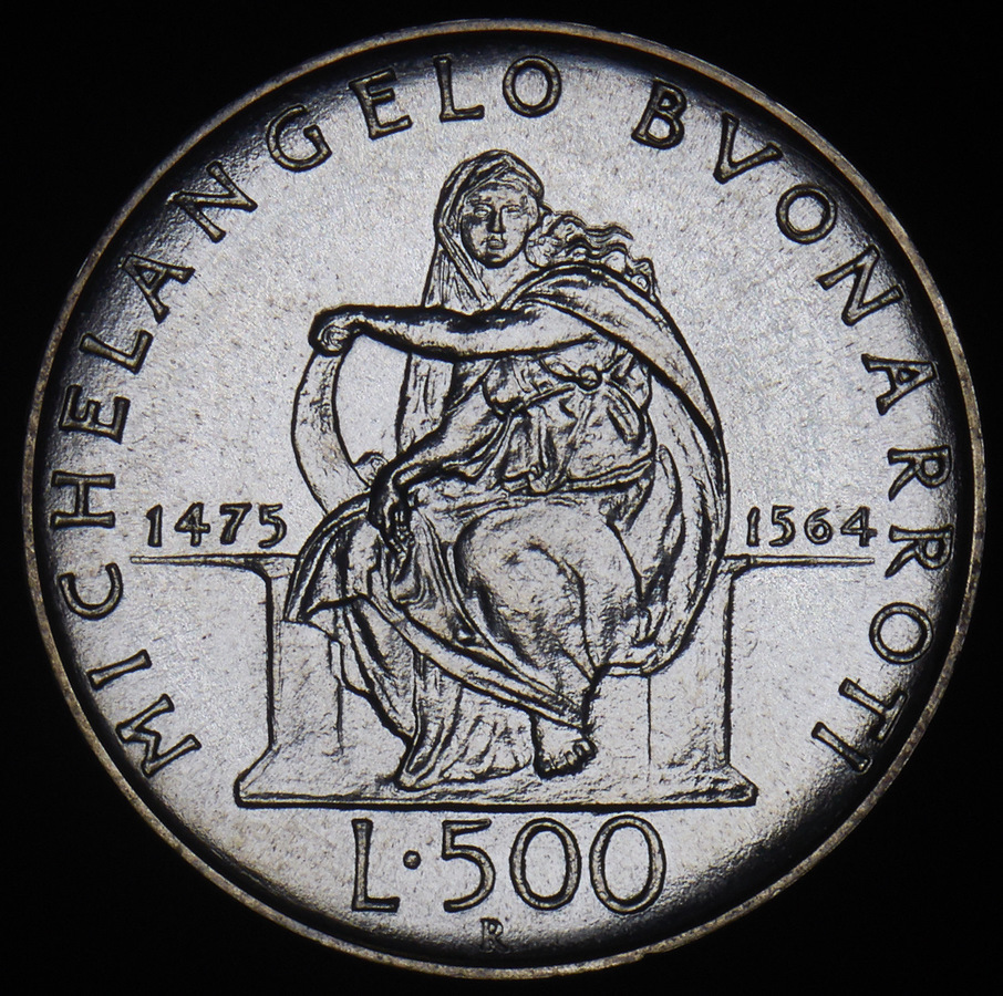 500 лир 1975 "500 лет со дня рождения Микеланджело Буонарроти" (Италия)