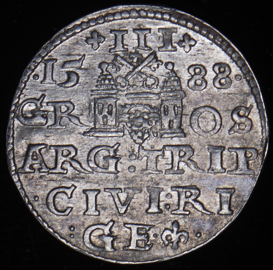 Сигизмунд III. Чеканена в г. Рига. Очень редкий год.