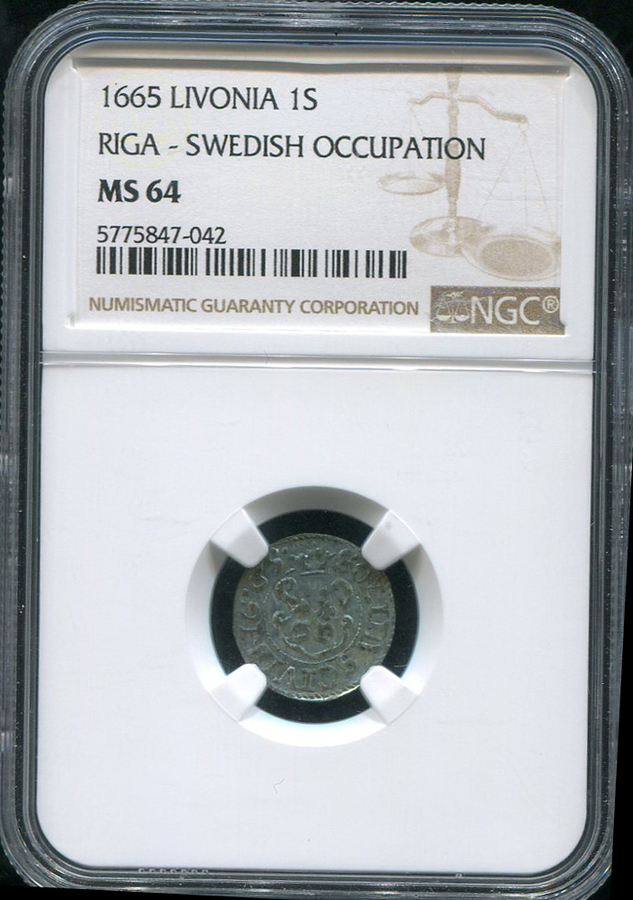 1 солид 1665 (Рига) (в слабе)