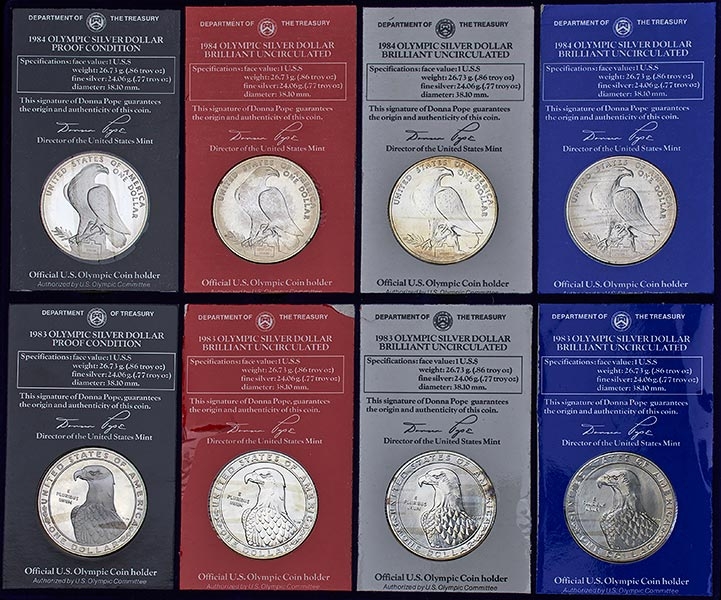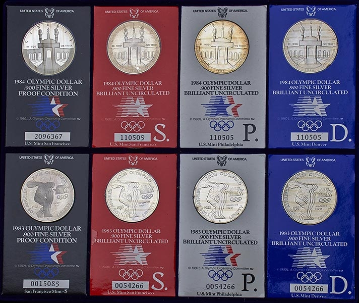 Набор из 8-и сер. монет 1 доллар 1983 "Олимпиада-83" (США)