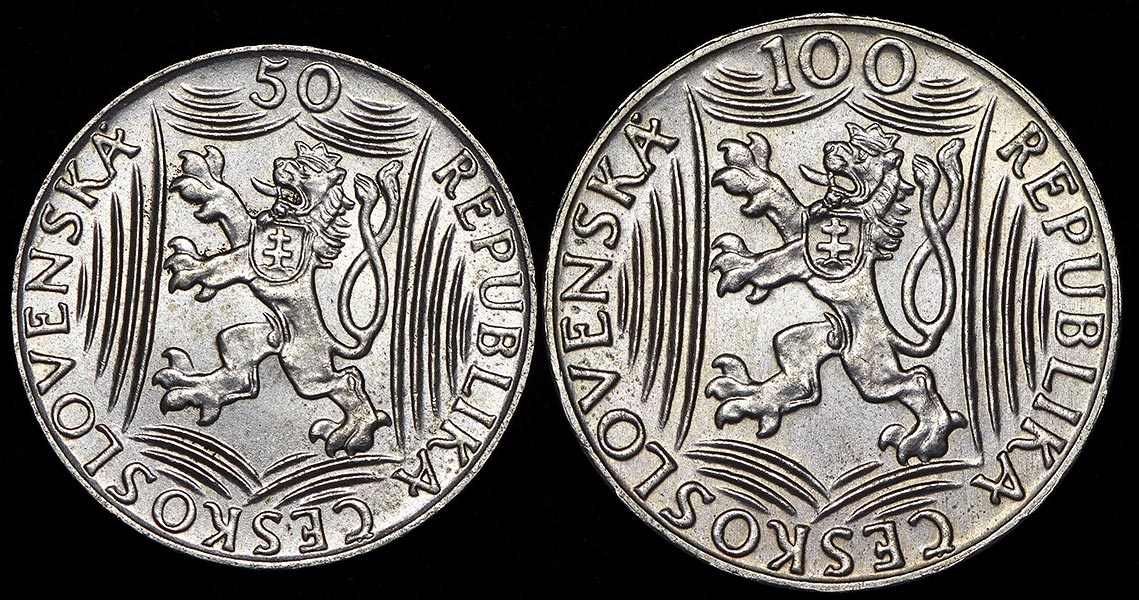 Набор из 2-х серебряных монет 1949 "70 лет со дня рождения Сталина" (Чехословакия)