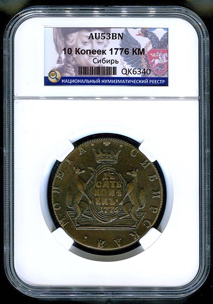 10 копеек 1776 "Сибирские" (в слабе) КМ