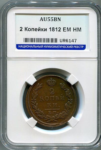 2 копейки 1812 (в слабе) ЕМ-НМ