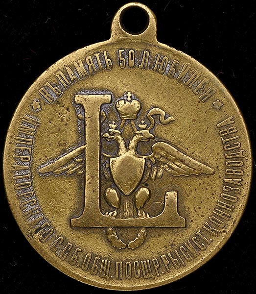 Жетон в память 50-летнего юбилея Императорского Санкт-Петербургского Общества поощрения рысистого коннозаводства.
