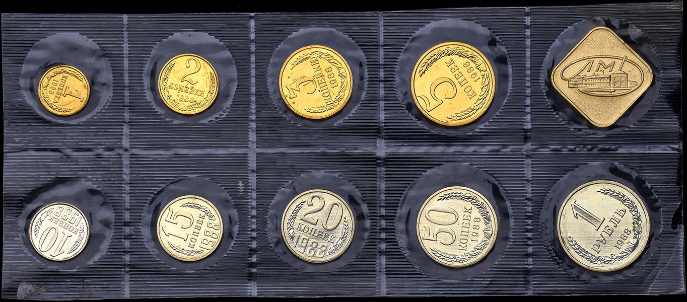 Годовой набор монет СССР 1988 (в мяг. запайке) ЛМД