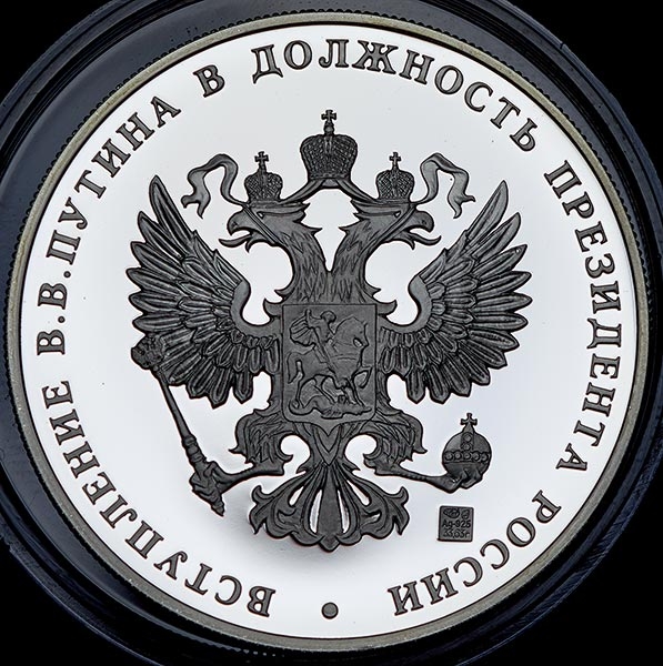 Памятная медаль по случаю вступления Владимира Владимировича Путина в должность Президента Российской Федерации 7 мая 2004 года.