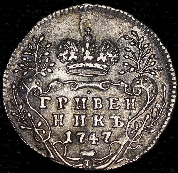 Гривенник 1747 без букв