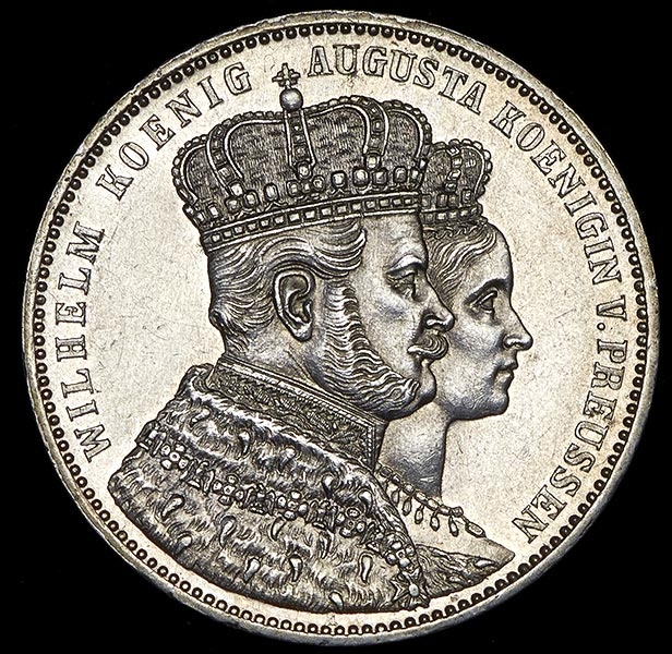 Чеканен в честь коронации Вильгельма I и Августы.