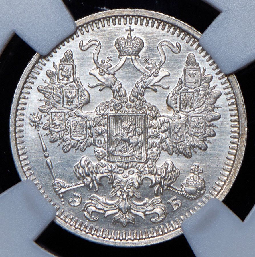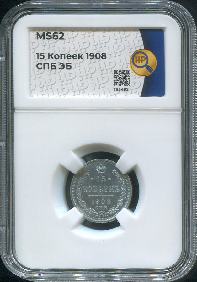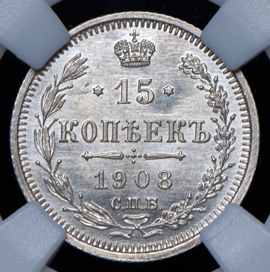 15 копеек 1908 (в слабе) СПБ-ЭБ