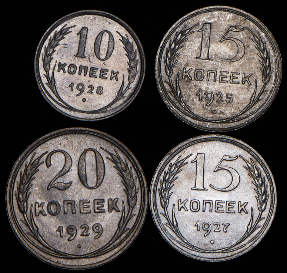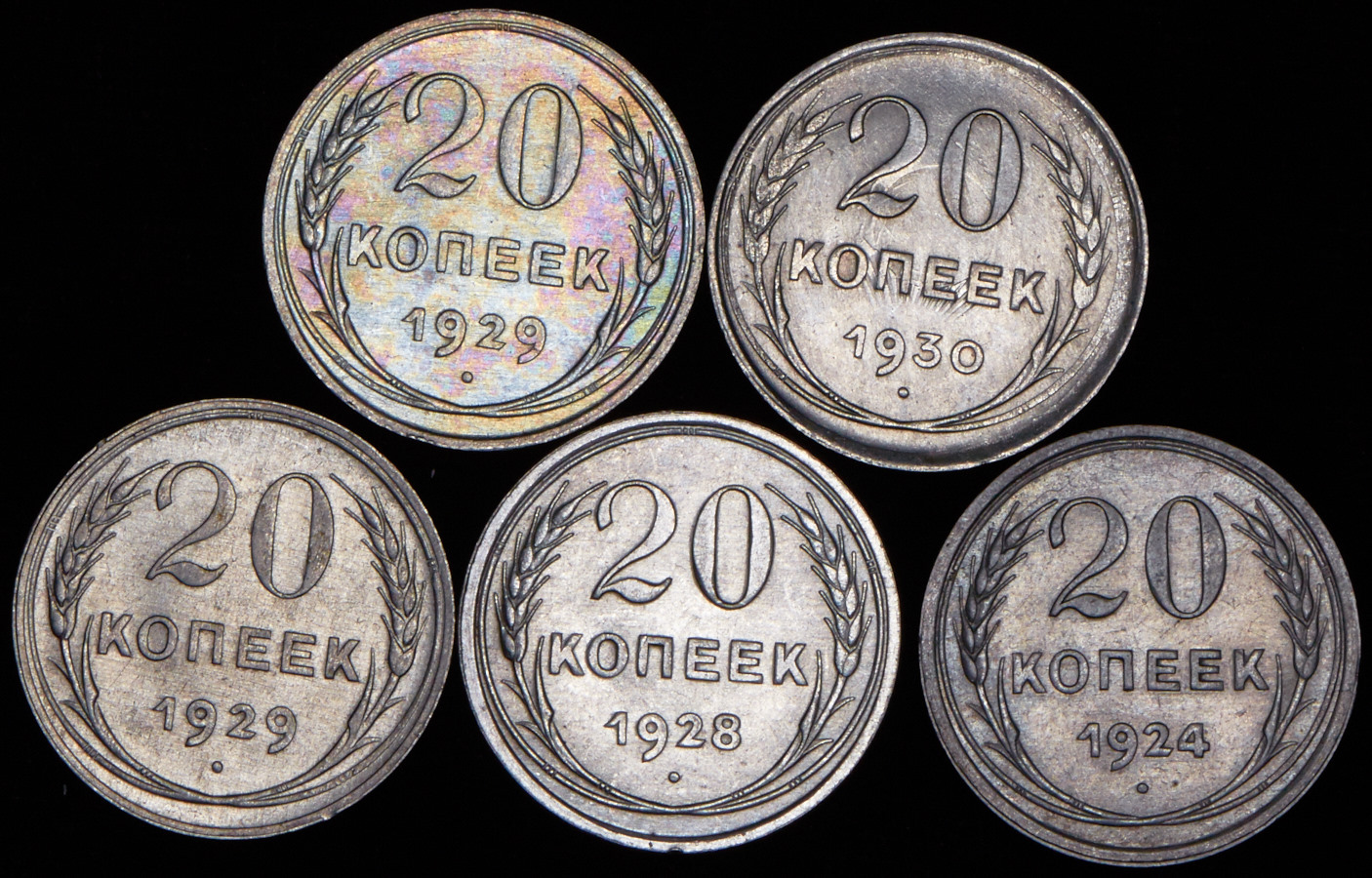 AU-MS. В набор вошли 20 копеек 1924, 1928, 1929 - 3шт., 1930. 15 копеек 1925, 1927. 10 копеек 1928
