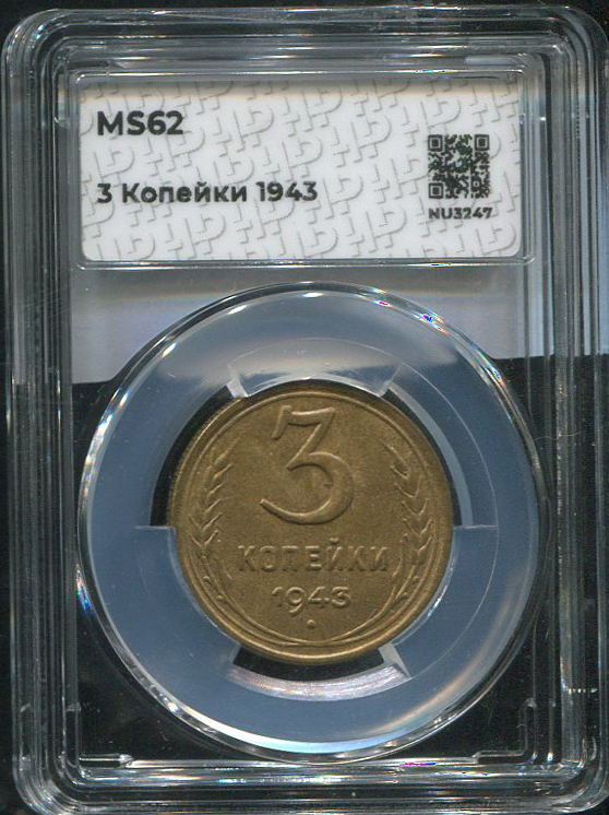 3 копейки 1943 (в слабе)