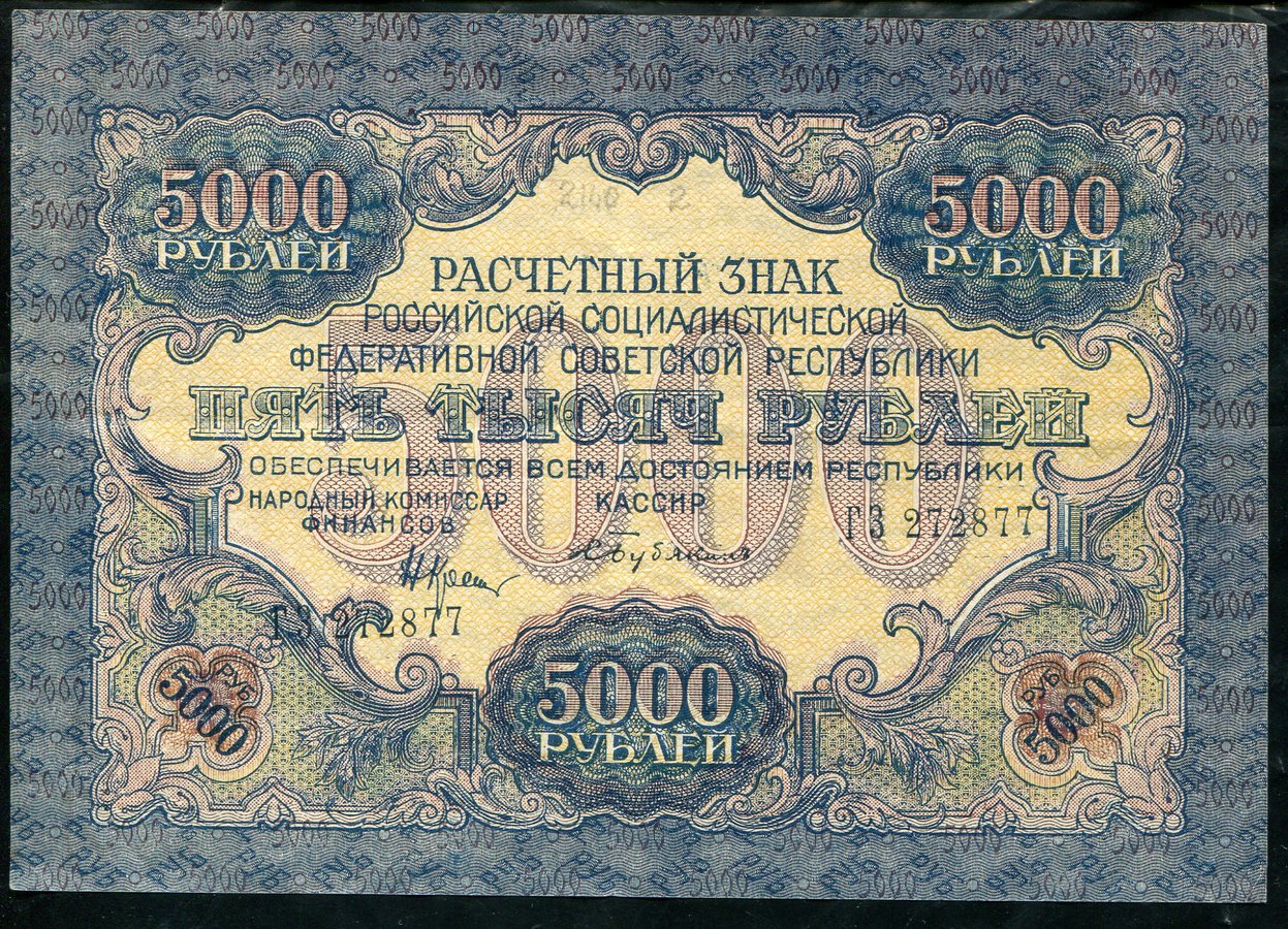 Расчетный знак РСФСР 5000 рублей образца 1919 года, ГЗ 272877.