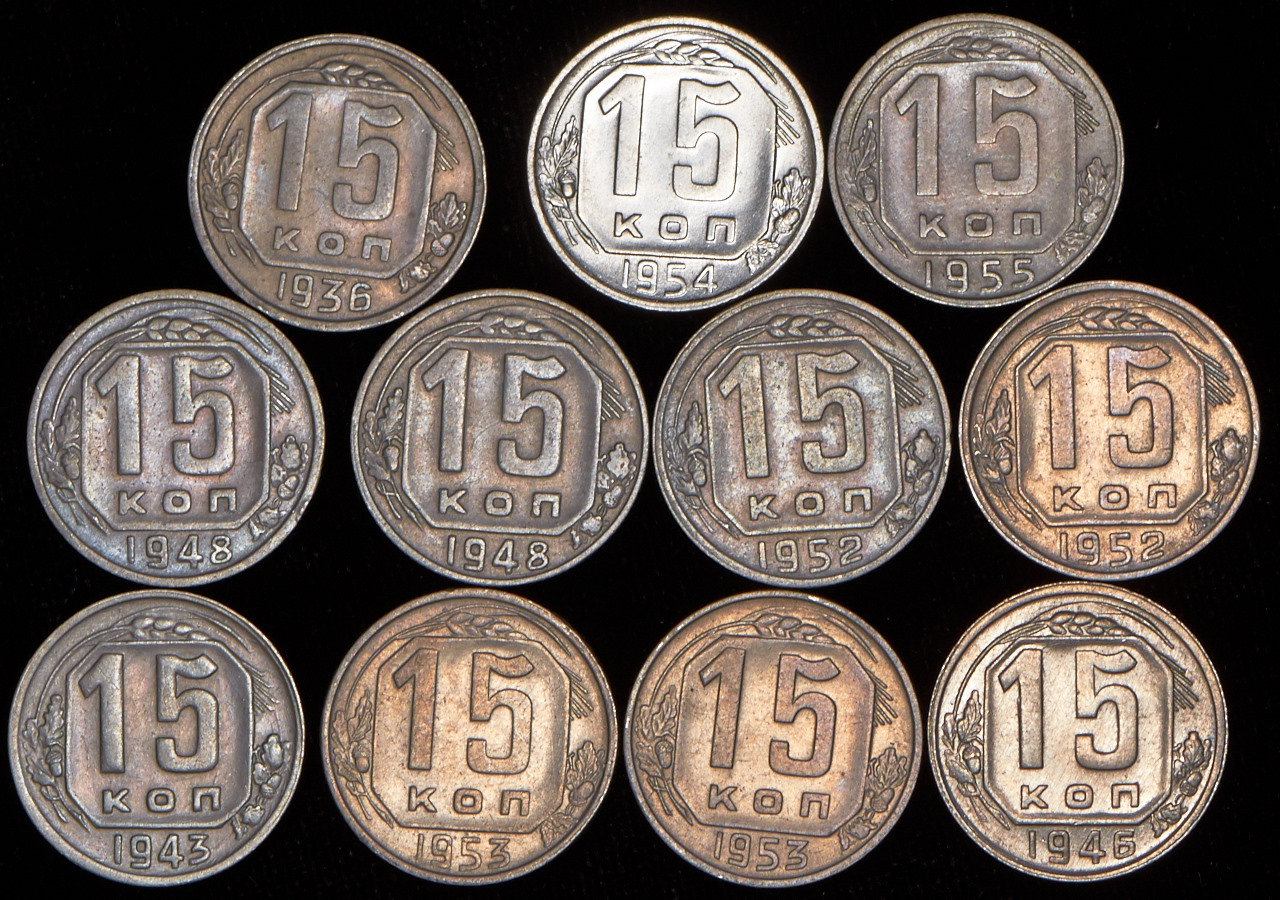 Набор из 11-ти монет 15 копеек (СССР)